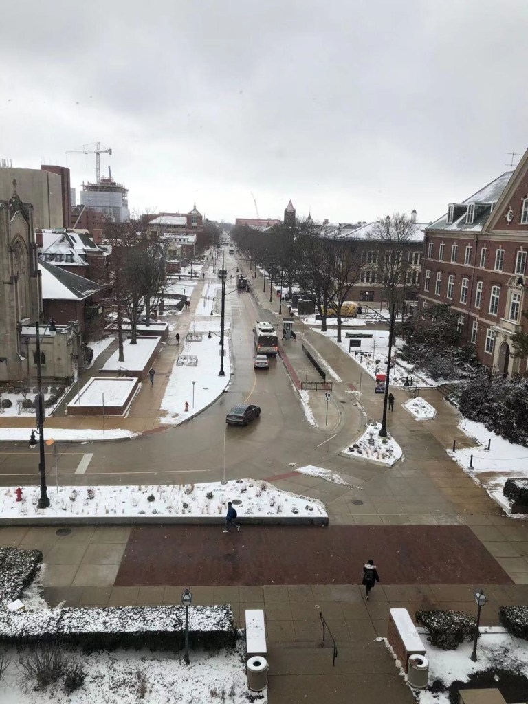 有一条路是两个城市的分界点。我常常在图书馆四楼从窗户向外俯瞰: