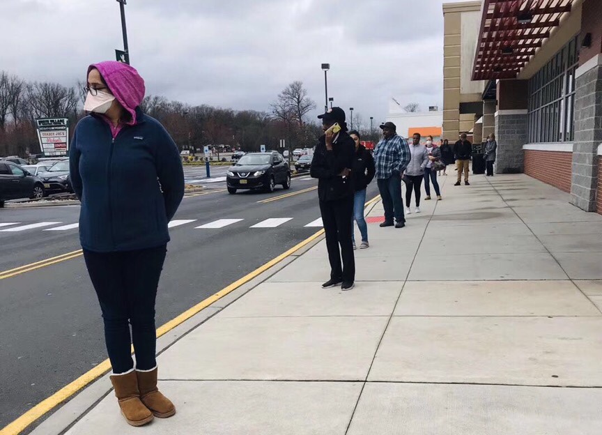 新泽西今天的感染数字超过30000。从两周前的过千,到一周前的过万,如果不看绝对值,只看增长率,我们姑且乐观地归纳出病毒至少减慢了传播脚步的看法吧。终于看到出来散步的人有戴着口罩的了!Public workers也戴上口罩和手套了(之前收垃圾也是不戴的)。身边最勇猛的本地朋友也发信息我说,准备戴口罩和手套去超市了。超市的储备充足,但为保持安全距离,人多的时候就在室外排出长长的队。大家每次都会尽量多买,以减少购物次数。