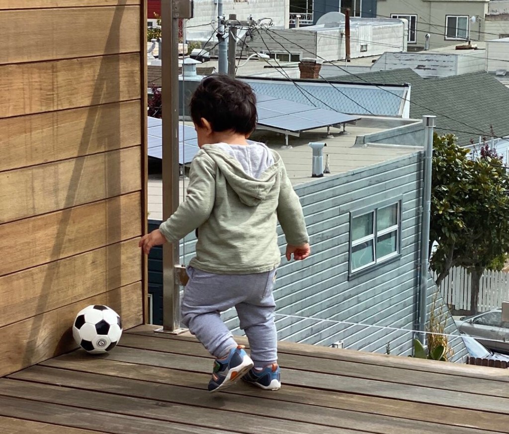 他的父母担心他孤单,不能去图书馆上课,也不能和別的小朋友一起玩。腾出更多的时间陪他读书,陪他踢足球,陪他唱歌跳舞,陪他做游戏,教他手语。在他成长的过程中,给予他满满的关爱。他是幸福的,没有因为疫情错失人间最美的四月天。