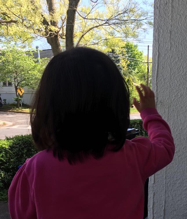 昨天下午,天气特别好,萱宝儿的两个发小要来visit一下。她们出发之前,我就问带她们来的两位妈妈,这疫情期间的visit,怎么个弄法?说来说去,大家觉得也就是像路过一样打个招呼,最多聊上几句。她们来了,站在我们家房前的人行道上,我们隔窗跟她们打招呼,然后,我还是带着萱宝儿走到房前的走廊里,隔着草坪跟她们说上两句。孩子们都带着口罩,不知觉地就往一起凑,时不时地遭到妈妈们保持距离的提醒。这种远远地喊话一样的聊,感觉怪怪地。孩子们都知道病毒的厉害和政策的要求,也好像接受了这种完全不同往常的聚会形式,小小的年纪,还不知道怎么表达对彼此的想念,只是夸赞对方的衣服,玩具,还不时分享自己发现的一朵花,一株不一样的草……在他们彼此的心里,好朋友的情感应该是没有什么能够阻隔的吧。预计几句话的寒暄,延长为一个小时的相望陪伴。临了,与以往一样的依依惜别,一声又一声清脆的“bye,bye”一直到在彼此的眼中走成小黑点……