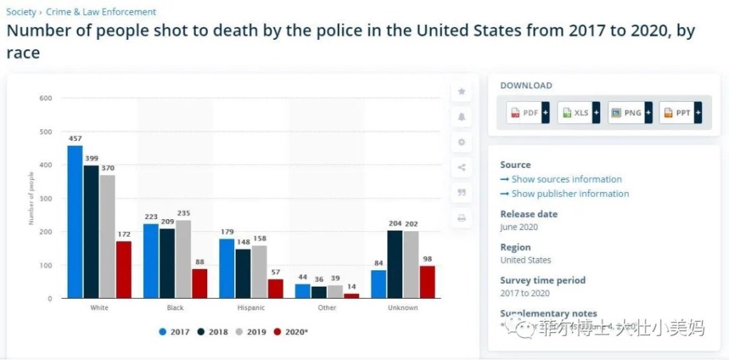 1. 每年被警察杀死(无论合法与否)的白人多于非裔