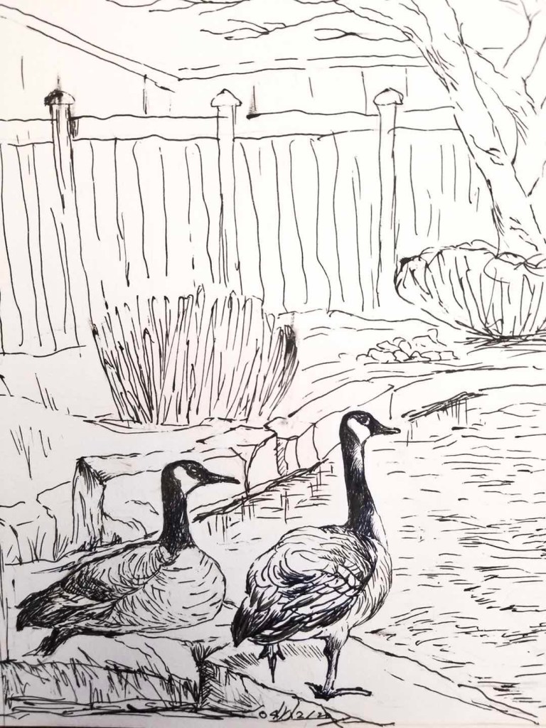 钢笔画:后院一角| 碧海蓝天 绘