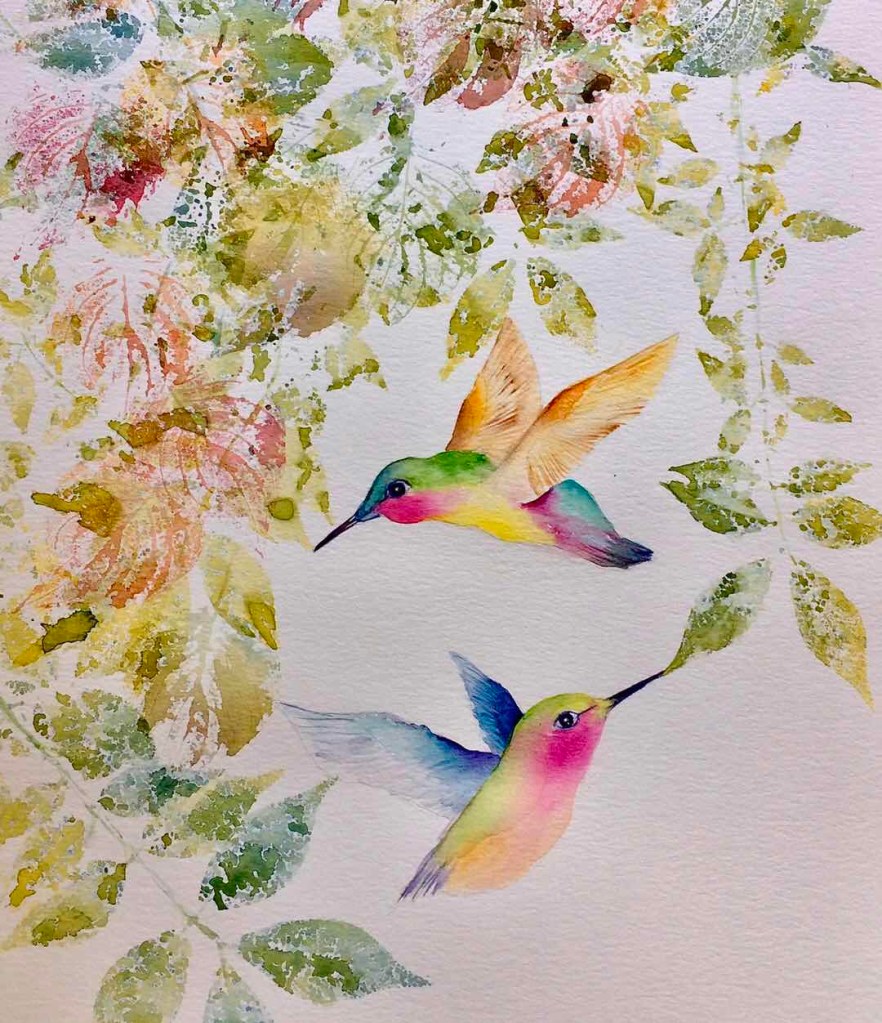 水彩画:蜂鸟 |明月丹青 绘