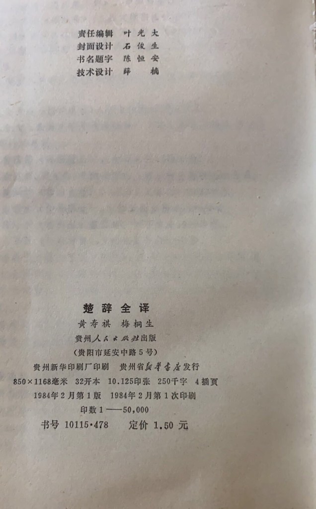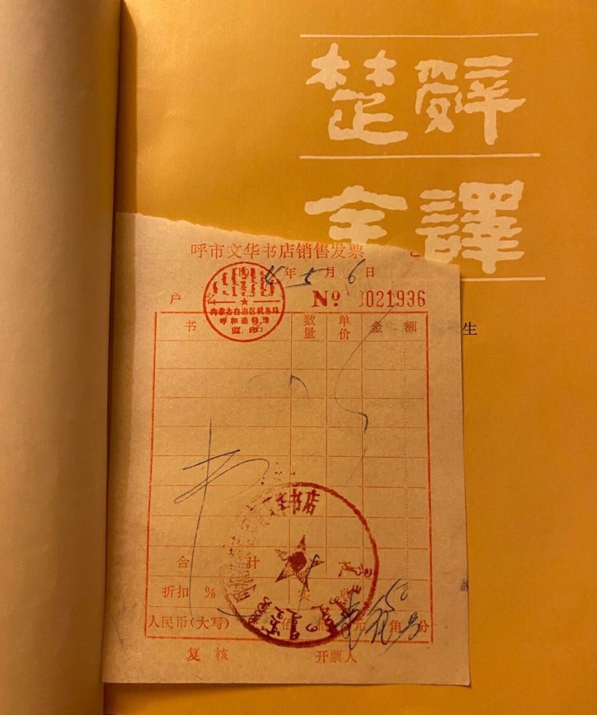 我很早就买了一本《楚辞全译》。书中的购书发票提醒我那是1984年在内蒙古大学进修理论物理时在呼和浩特买的。 在漫长的时间里,我偶尔翻一翻,读几段,浅尝辄止。