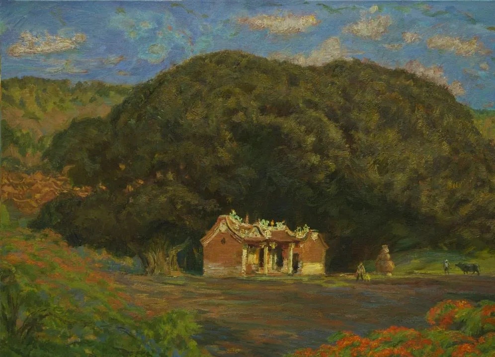用土黄或棕褐去替代那些景物受光面的表现,不仅使洪瑞生的油画去掉了一般画家极易失范使用的白色或冷灰色,而且使他真切地表达了阳光在闽南湿润的空气中形成的闪烁感。