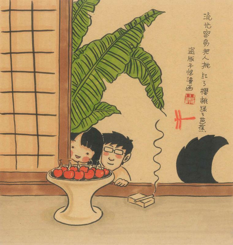 我和小雨认识十年了,在武汉美术馆里,她每次都默默地站在我身后看我画画,接下来就每周一场地共同为观众漫画写生,这也是《落子团队》的开端。