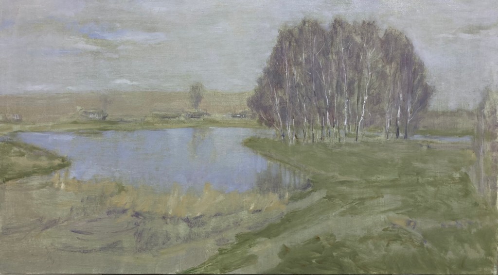 五月春来,确是外出写生的时机,风景写生成了更加自由的试验。彼得堡的街景,老拉多加教堂,普斯科夫郊外,苏茲达里小镇、喀山铁路沿线的旷野,真实的风景与博物馆经典作品的印记不断地在眼前出现,试着去忘记又想一股脑儿拿来尝试一番。每每想起,总觉意犹未尽。