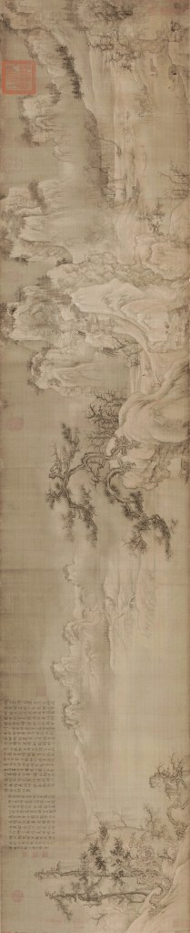 S:是的。前段时间故宫博物院“千古风流人物—苏东坡主题书画特展”上,又见到苏轼好友、驸马都尉王诜的《渔村小雪图》。展厅中画作不多,细观此图让人感到一种小确幸,回味悠长至今。私以为王诜是文人中真正会画的,此图咫尺千里,精谨而不失苍劲,融合了李成的“蟹爪枝”,郭熙的卷云皴、刮铁皴,李思训、李昭道的金粉勾勒之法,画面仿佛有着初雪的浮光,微妙又灵动,弘阔又超逸,清朗又秀润。