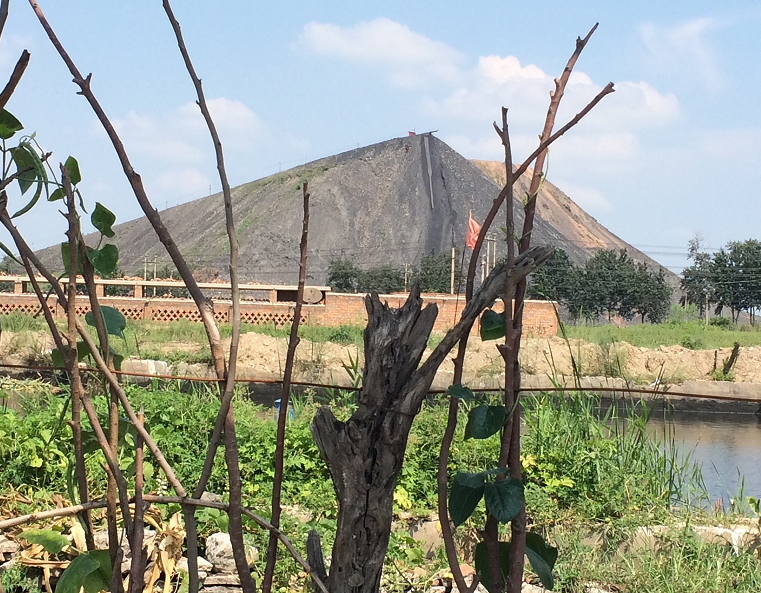 为了使大家对煤矿有所了解,我附上两张照片。图5是矸石山,当煤从地下挖出后,要经过筛选,好煤挑出来,供社会使用,剩下不好的,就是矸石,并把他们堆积起来,日积月累,就形成山一样的形状,所以被称为矸石山,煤的这个筛选过程叫做洗煤。图6是井架和天轮,建在煤井的上方,地下的煤就是通过井架上的天轮从几百米甚至上千米的深处提出来的。