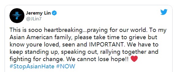 我相信,当下一双手推向亚裔老人的时候,一定会有人出来制止;当下一个人喊出“滚回中国”的时候,一定会有勇敢反击的声音;当下一个歧视亚裔的行为出现的时候,一定会让TA付出代价。