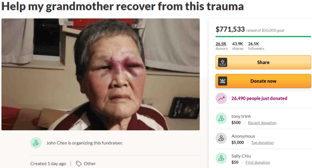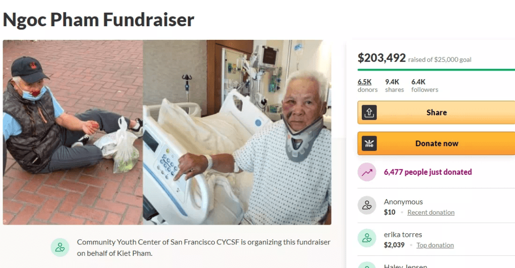 那个歹徒当天早些时候,还殴打了一位80多岁的越南裔老人。如今给这位老人的捐款也已经超过20万美元。