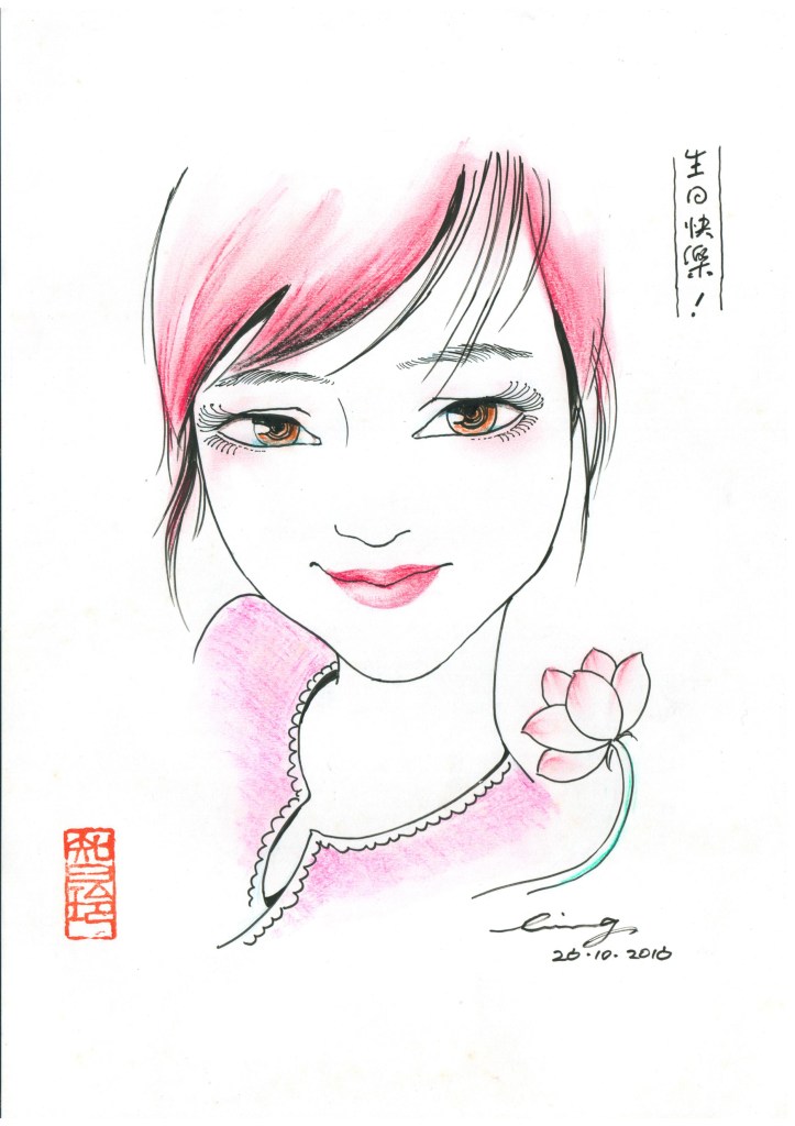 关于漫画,妈妈说我是从不记事的时候就开始画了。记得小的时候画了第一张漫像,画的是哥哥,当时只是觉得用夸张的手法,简单的线条,放大对方的特征,特别的好玩。每个人看了画都会哈哈大笑,又会称赞画得像极了,后来长大了,回想才知道,那就是漫画了。