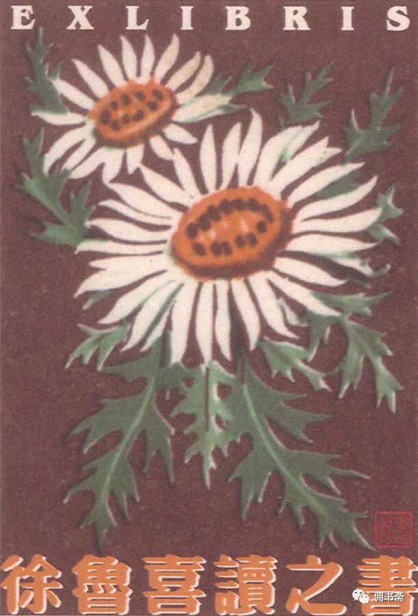 而《徐鲁喜读之书》,褐底绿叶,黄蕊白花,人淡如菊。构图简捷明快,花叶摇曳生姿,颇具西方版刻之风。徐鲁兄是儿童文学作家、诗人、书话作家,著作等身,若无所执着则无以至今天,若无所淡泊也无以至今天。