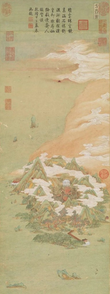蓬莱是传说中的三座仙山之一,另外两座是方丈(方壶)和瀛洲。在古老的仙山信仰中,这里有着更为神奇的存在:“藐姑射之山,有神人居焉。肌肤若冰雪,绰约若处子。不食五谷,吸风饮露,乘云气,御飞龙,而游乎四海之外。”(《庄子·逍遥游》)“忽闻海上有仙山,山在虚无缥渺间。楼阁玲珑五云起,其中绰约多仙子。”(白居易《长恨歌》)从麻姑、毛女、东方朔、吕洞宾到徐福寻仙、黄老之术,以及云气纹、博山炉,乃至《红楼》《西游》贯穿的仙道痕迹,从精神到物质,人们对尘俗世界之外逍遥仙境的向往始终存在。而从远古被赋予超能力的神仙到近古自主选择存在方式的隐士,由神到人的意识逐渐演化觉醒。仙境归隐主题中不变的,是“独与天地精神往来”的态度从容和风神潇洒。