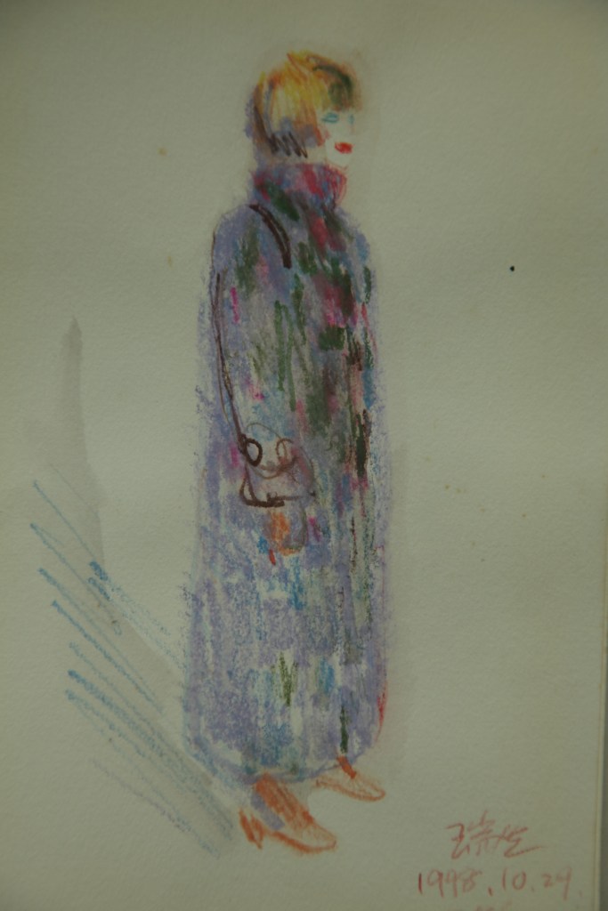 “个性化语言”一组速写里有五个人像和一幅全身像,全身像《巴黎女郎》是我在1998年访欧时画的巴黎时髦女郎,我力求把那巴黎女郎的精致优雅形象表现得淋漓尽致。其余的五个人像因他们的气质与形象不同而运用个性化的造型手法,而且有三人都探索性地画了三张以上;这样手法画一张,另外手法又画第二张第三张。