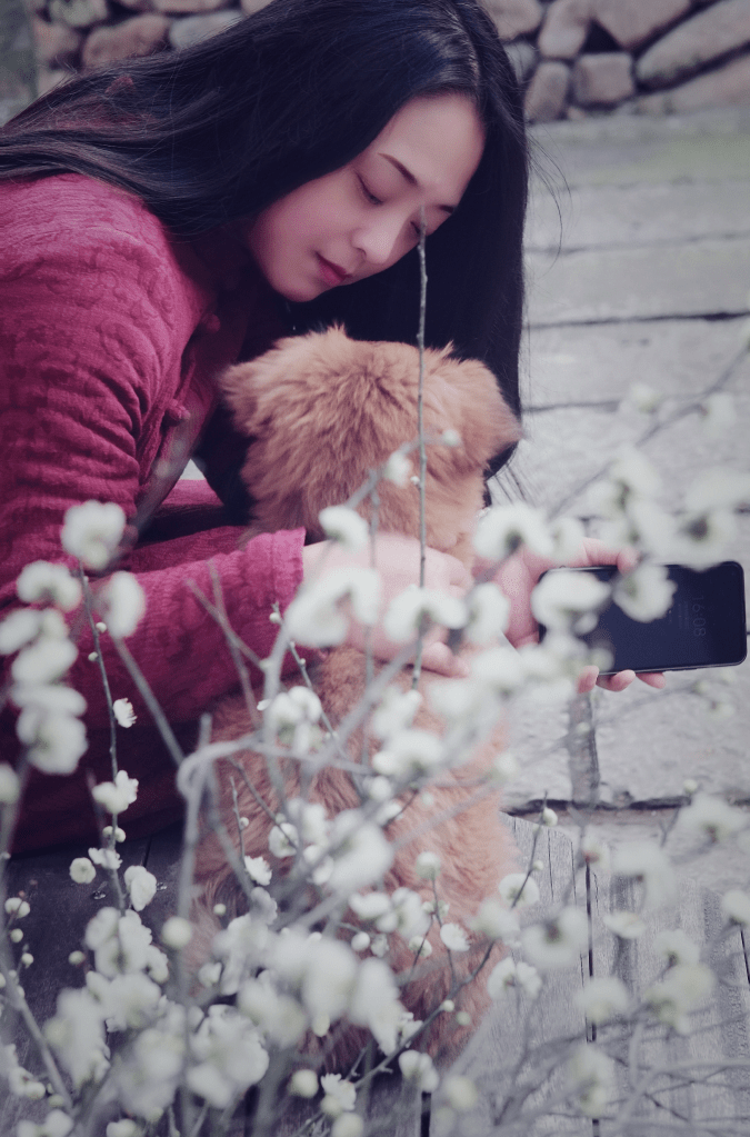 刚来时天气很冷,朋友送过来一条狗狗,说让它给你做个伴吧,我给它起名字叫嘟嘟,我们剪了些绿梅,插了梅花便过年了。