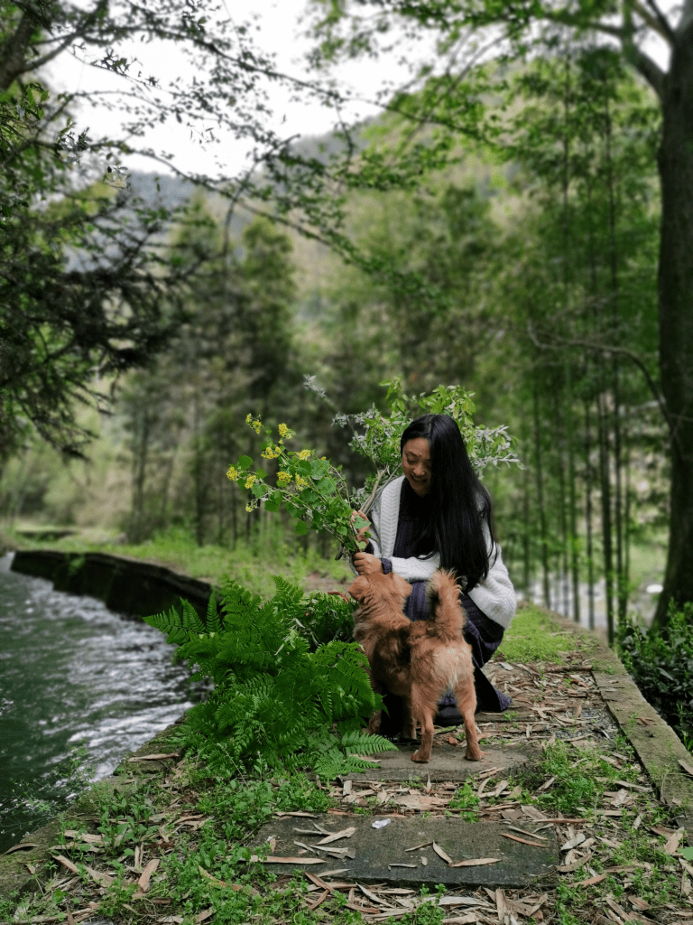 于是遛狗成了我的日常,村里的狗狗是很自由的,不用栓绳子,可以自由活动,于是我又认识了全村的狗子,大黑,头盔,小熊,可乐 ……