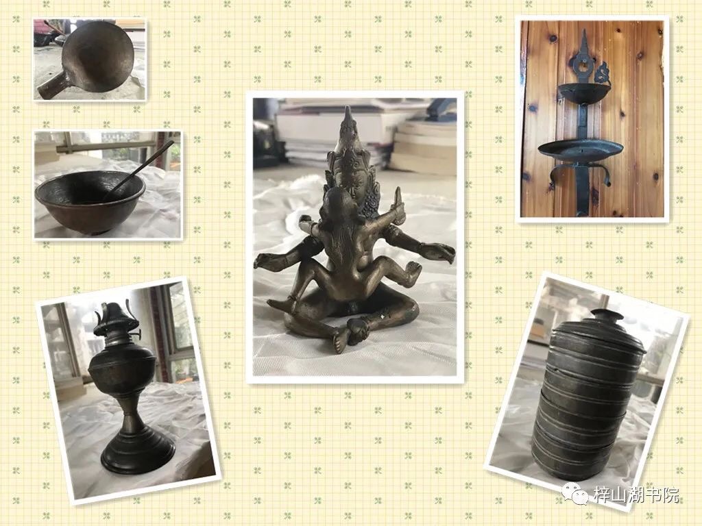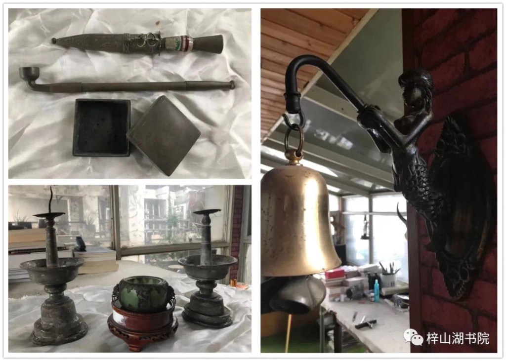 铜器皿有烟壶、水壶、暖壶、灯盏、烘笼、砚盒等用具和佩戴、供奉、祭祀物。锡器皿有水壶、酒壶、烛台、蒸笼等。这些物件虽年代久远,却也上不了文物档次,只可称之为老货、旧物,且多数有品相缺陷,在行家眼里恐怕只是破铜烂锡一堆。