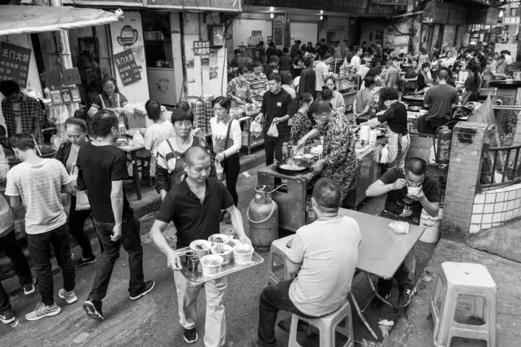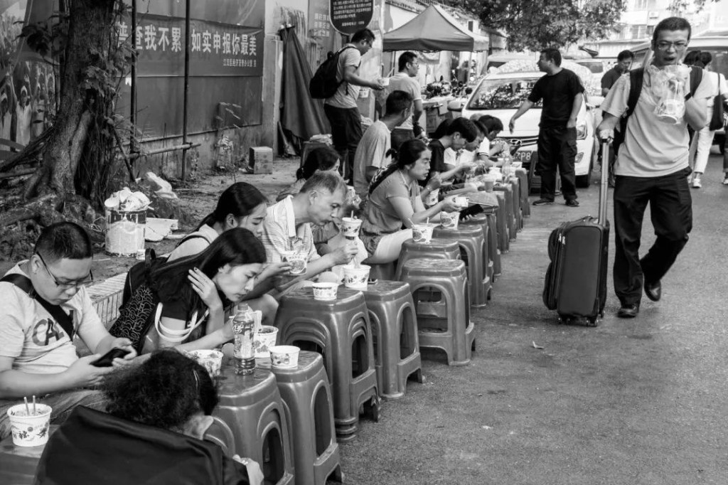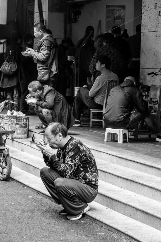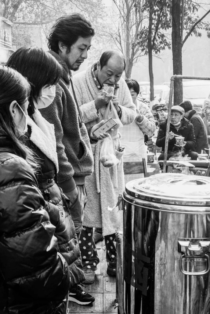 因此,保护这些差异性,保护本土文化,便显得格外地重要与迫切。这些差异与特色,已经不能用肤浅的“风俗”,“风情”来阐释了。这是关乎人类文明的重大课题,也是摄影艺术理所当然的历史使命。因此,我是在这个意义上来品读建忠的作品的。他的《过早》,就像当年的《清明上河图》一样,为历史留下了可贵的视觉史料。于是,我便理解了建忠为什么选择了武汉人最有特色的过早方式。就像一个美食家屏蔽了所谓的“杂乱无章”,而给予武汉“早餐之都”的美誉。在这个意义上,《过早》再一次展示了建忠对于摄影题材的慎重,敏感,与责任感。这也是一个优秀的纪实摄影家必须具备的思想品格与艺术品格。
