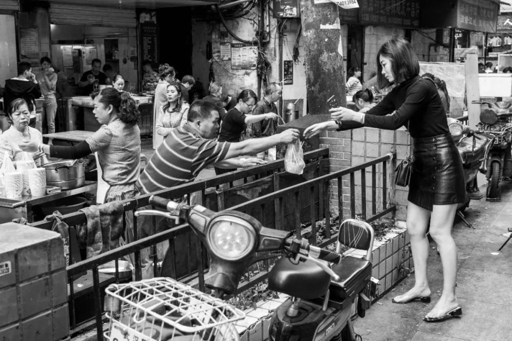 清道光三十年(公元1850年),叶调元刻印的《汉口竹枝词》,第一次将吃早餐用“过早”一词表达:“小家妇女学豪门,睡到晨时醒梦魂;且慢梳头先过早,糍粑油饺一齐吞。”在那个时代,连小家妇女过早时,都这么豪爽粗犷,可见楚地侠武之民风源远流长。同时,杂糅的特点,就是包容,就是海纳百川。武汉早点的丰富多元,形象地展示了这一文化特色。因此,建忠用摄影语言精准地展示了武汉多元杂糅,包容大气的文化特色。一句话:建忠对于“过早”的选择,是经过了深思熟虑的,是想通过纪实影像,再现武汉的文化特色,城市之根的。
