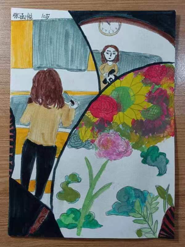 by Olivia Mahaffey (熙兒 绘,9岁)Blissful Moment of Motherhood by Olivia Mahaffey (母亲的幸福时刻, 熙兒 绘)张涵悦 绘,10岁My Little Gift to Mom 给妈妈的小礼物 1给妈妈的小礼物 2,黃奕博 Kieran Wong,9岁Together to the festival! 和妈妈一起过节, Selene Wong 黄奕迪,12岁我和妈妈,Emma 冯棋,9岁Alicia 冯喜,7岁我爱妈妈,Citlali 星星,9岁Derek Sun,8岁江睿博,10岁江睿士,6岁