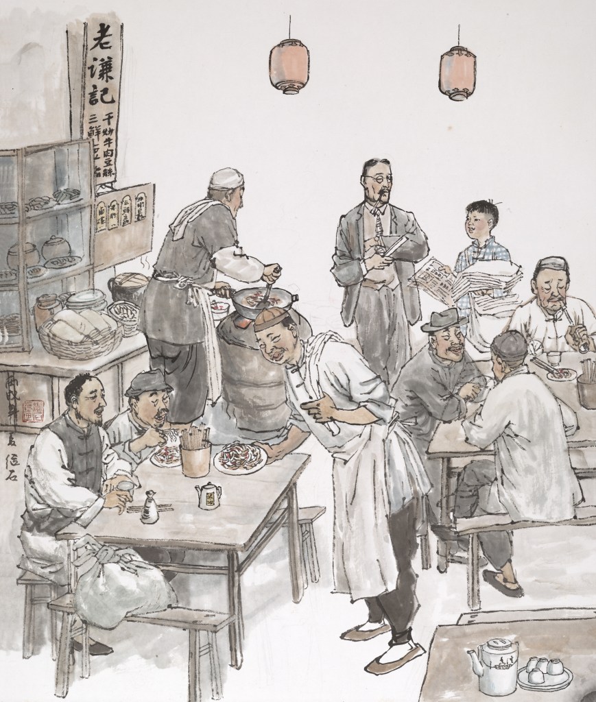 我读四十四面《热干面》图文,唤起一个追问:热干面佐料中的萝卜丁,是现在大多热干面馆中通用的鲜亮红艳胡萝卜丁么?我凑巧有机缘知道原本并不是。何以今非昨是,乃今人逐利,取易舍难。读第九十面《谦祥益》图文,描绘武汉著名布匹商号,诚信不欺客、享有良好声誉,生意兴隆的场面,唤起一个记忆,某年,谷林先生信中有“足尺加五”一词,我不解,函询后得知是布匹店施惠顾客的行规。未详专营布店武汉尚有存否?各类商家打折让利倒是天天叫得山响,可惜全是“买家没有卖家精”套路。