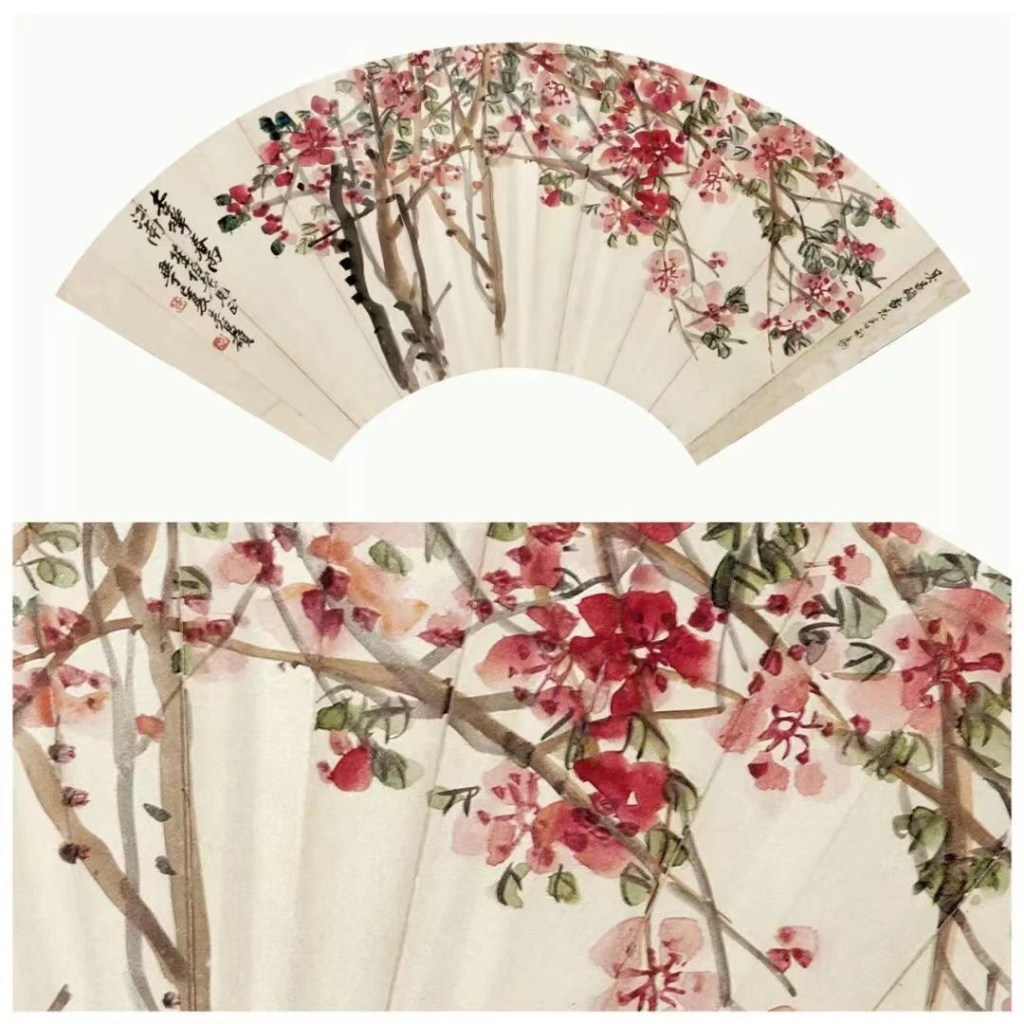 北京从1924年开始,在中山公园水榭办书画扇面展,前后十七八年,展出的名家扇面,有数千。此事记载于邓之乡《文化古城旧事》。文中还说,1937年,曾任清宫廷如意馆(相当于今国家画院)最后一任馆长的屈兆麟,一幅扇面,标价二千元,相当于三分之一两黄金。这个展览当时名“杨仁雅集时贤书画扇面会”,“策展人”是清代宗室远支的溥勋。