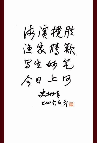自宋人张择端《清明上河图》开一代风俗长卷画风以来,许多画家乐此不疲。我认为长卷的创作不仅仅是容量的展示,更重要地是作品的艺术含金量,追求局部堪比斗方精,整体画意无尽穷的境地。成喜正值创作盛年,我期望他以《渔家乐》为起点,认真总结,创作出更好的风俗画作品。