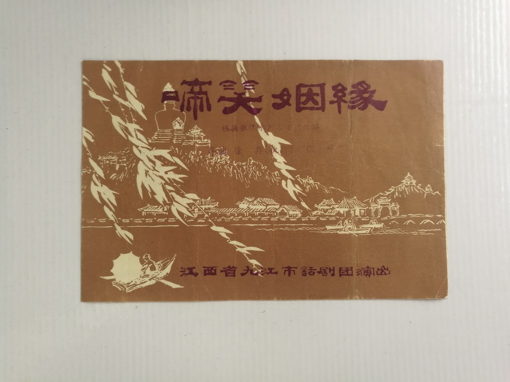 寒舍另有江西省九江市话剧团公演《啼笑因缘》时编印的两种戏单,一种封面为枣红色,一种封面为墨绿色,皆为32开对折页。单子上未注明演出日期,经考证,均属于上世纪70年代末产物。1979年秋,该剧曾到南京公演,夫子庙剧场一时间座无虚席。其导演为徐典、张峰,吴有熙、方坚分任樊家树AB角,李爱群、童雁冰、洪丹华分任沈凤喜ABC角,于丽、余荷艳分任关秀姑AB角。戏单上未提编剧之名,是不愿提,也是不敢提。