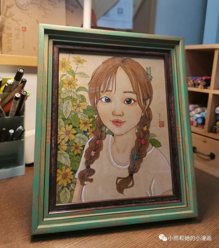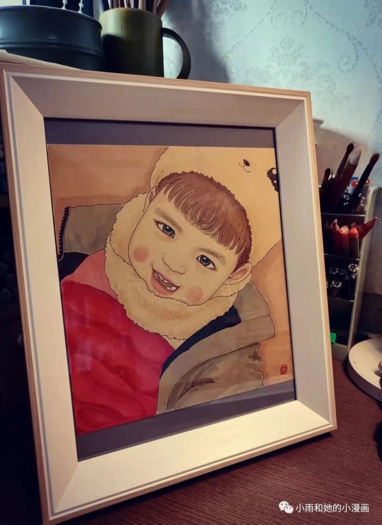 所以,照片的质量也在一定程度上决定了画的质量。如果收到构图和色彩优良,又清晰的生活化照片,我多半就知道画也不难画。但如果照片质量不高,比如像素不高、构图不好、角度不好,表情不自然,或者美颜过度等问题,那画面组织就需要花费更多精力,且最终效果像不像本人也很难说,只能说尽力像照片了。