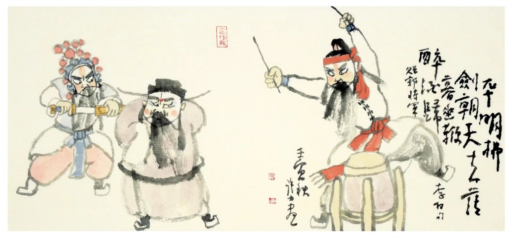中国戏曲和中国画在大的理念上是一致的,即意象表达。虚实相间,以虚表实。所以说,中国戏曲不仅为画家提供了“戏”这个媒介,而且在具体的表现手法上,还给画家贡献了大量可供借鉴的招术。