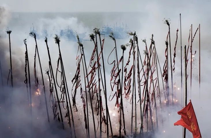 最後是焚化祭品和放水燈。這時,眾多善男信女齊心協力,抬起紙糊的觀音寶船和鬼王、裝滿紙錢的盂蘭盆,以及紙糊的衣櫃和房子等各種供品,浩浩蕩蕩來到開闊處,一把火將其化為烏有。據說只有這樣,鬼魂們才能收到人間的供品。