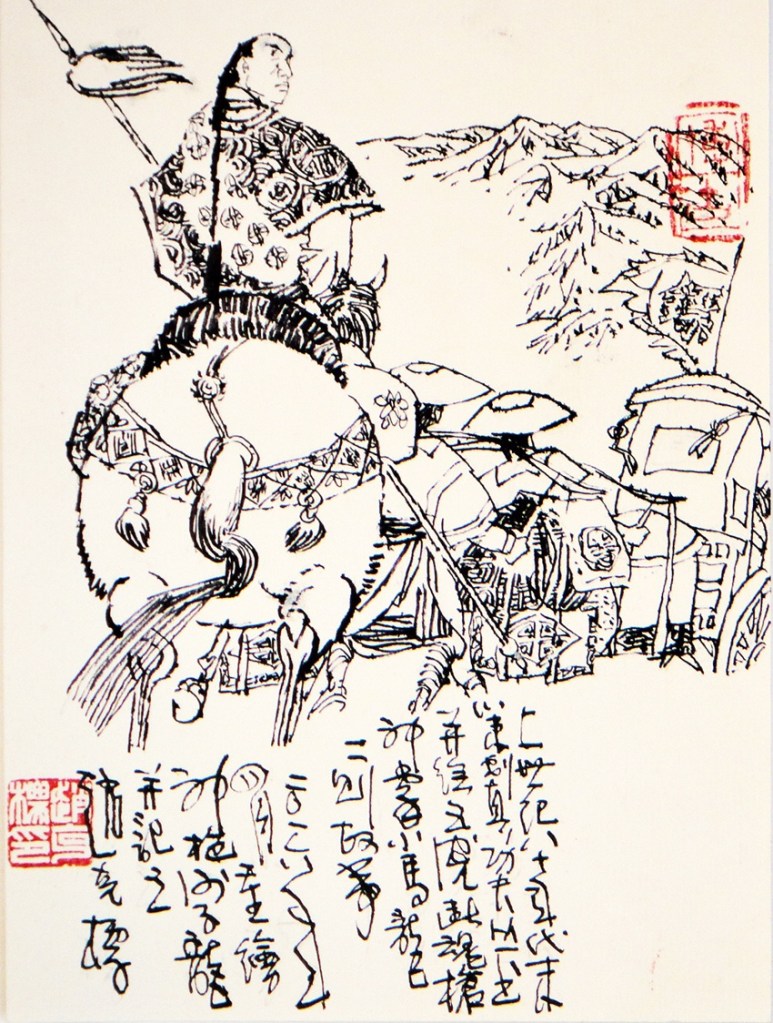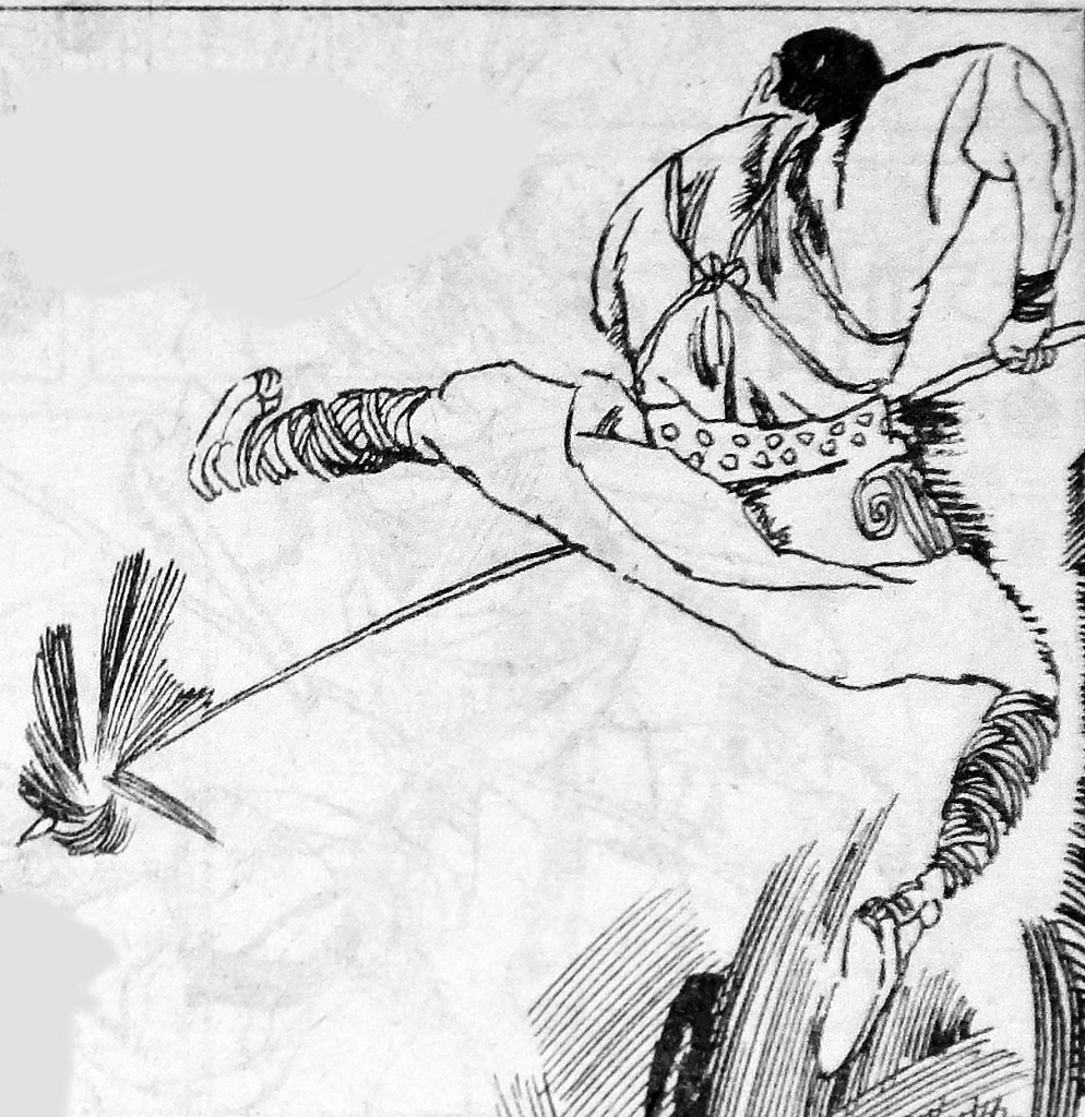 小时候爱看打斗故事,青春期迷恋英雄救美情节,初学画时临摹武将义侠,后来,通过画画终于能赚稿费了,就很爱表现武打场面,一招一式,吆吆喝喝,尽力画出劲道来,想象中的真功夫!其实也就些架势罢了,但正邪是分明的,好人胜出,坏人败退。