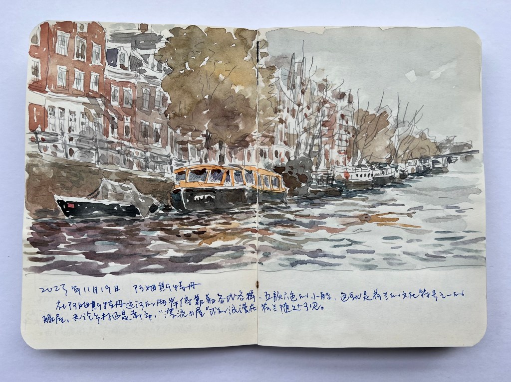 今天遇到阿姆斯特丹难见的好天气,当地人说这里每年有两百多天都会下雨,像今天这样晴空万里的情形较少。坐小玻璃游船,游阿姆斯特丹运河两小时。