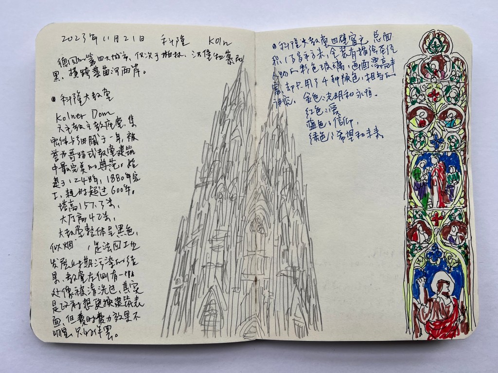 大教堂整体呈黑色,似烟熏般,是德国工业发展时期污染的结果。教堂左侧有一小处像被清洗过,其实是政府想更换建筑表面,但费时费力效果不明显,只好作罢。