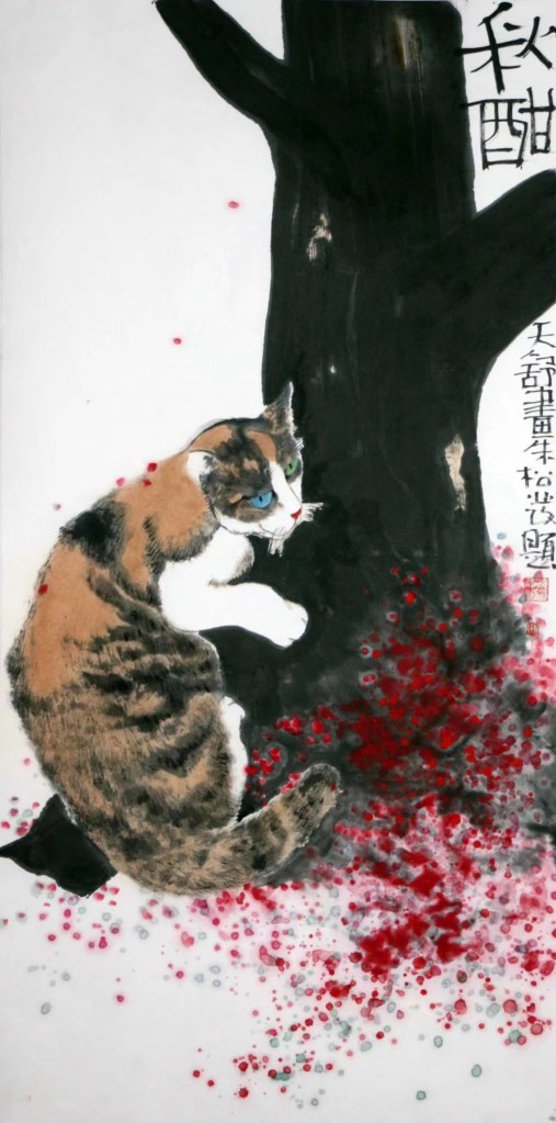 天舒的猫具有天舒特质。天舒介绍自己的创作之道是“遵从内心” 、 “形态动作化” 、 “加上一点思想”,实现创造性转化、创新性发展,这些,是天舒的艺术之道,也是他的生活之道。除了初中刚毕业的那几年,这三十多年,他基本就是一个自由人,没有体制的制约、不受组织的管理——读书的时候,我曾在天舒的家庭报告书上写下“天马行空、独来独往”八字,四十年过去,我再加几个字吧——天马行空、独来独往,走南闯北、多姿多彩。在某些方面也许失去什么,但得到的或许更多,尤其是在艺术创作上。