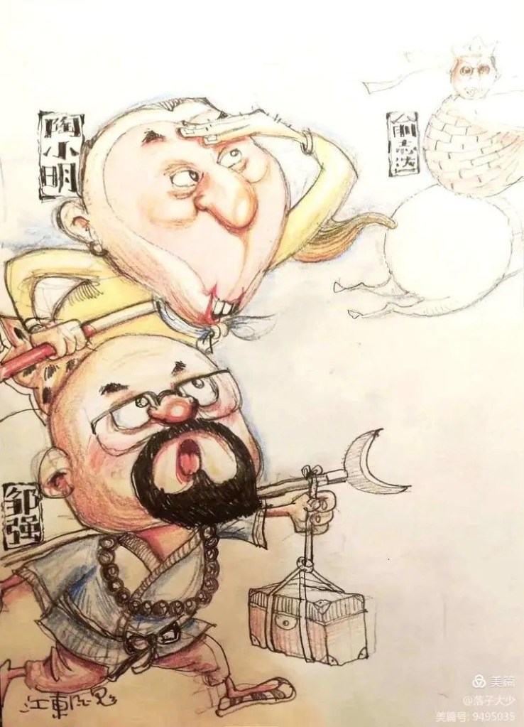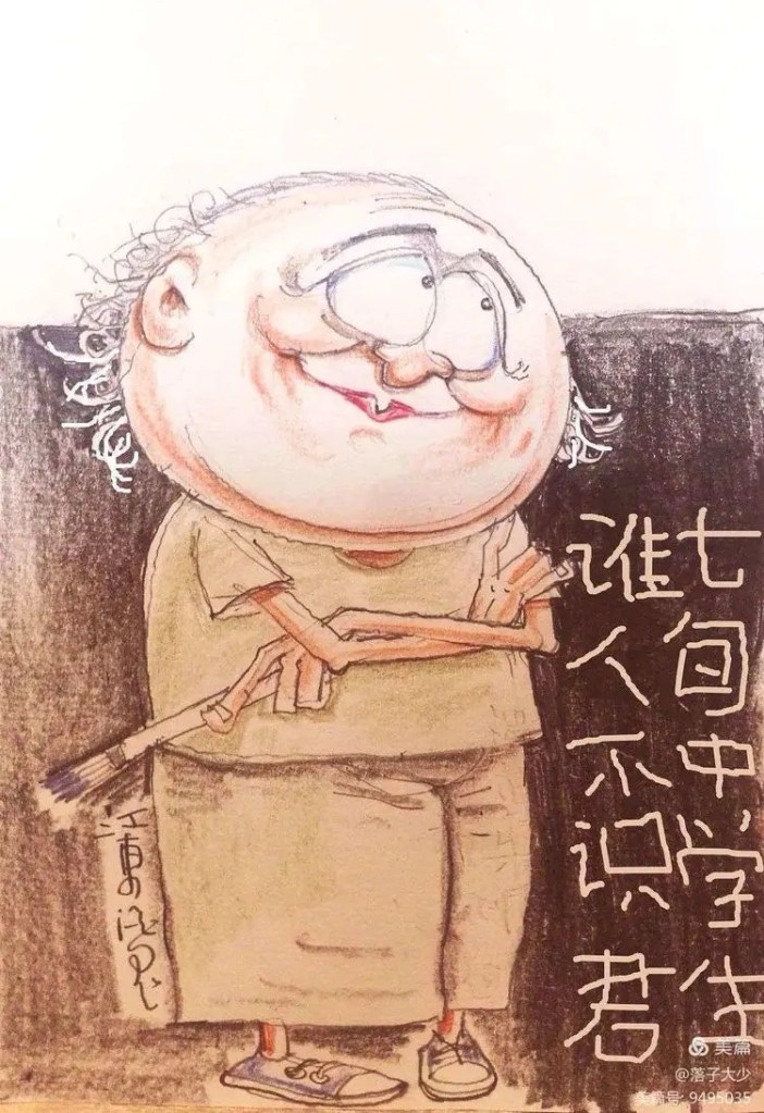 2017年我携《一棵开花的树-六人肖像漫画联展》到桐乡展出,正逢漫画界领军人物陶小明先生筹办国内肖像漫画家高峰会议。会议上一见江东酒鬼,哈,大大脑袋,细细胳膊细细腿,活脱脱一个他自已漫画中人物也!
