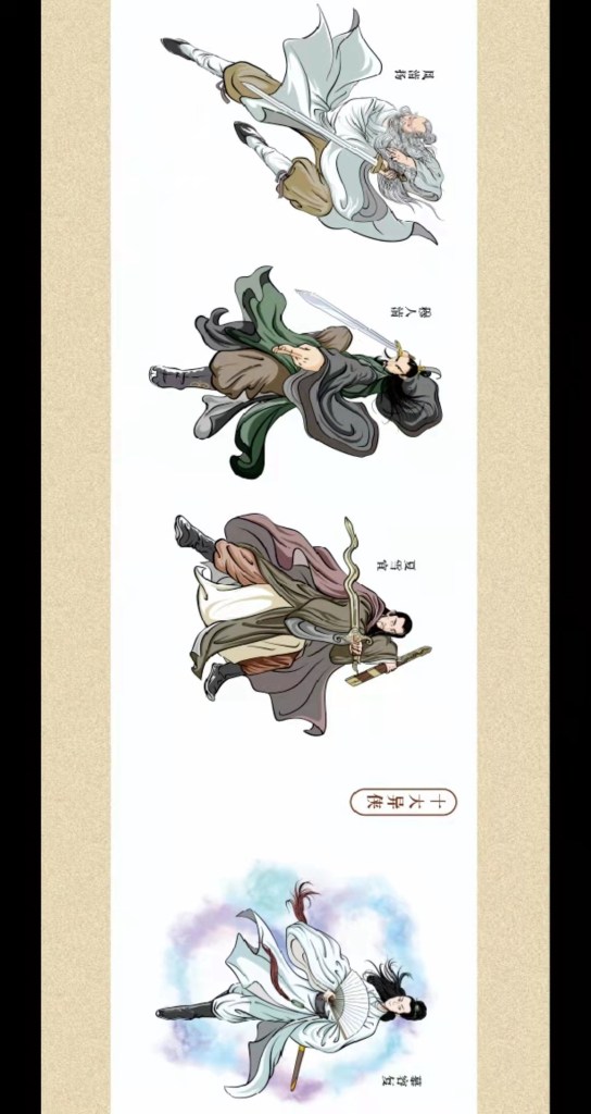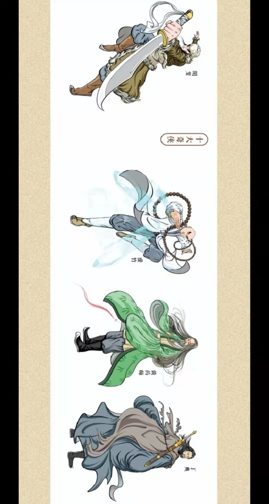 最初,我想依据网上的一篇金庸100位武侠的战力榜绘制,但不久就遇到了困难。这些人分属不同的小说,战力排序参考价值不大。另外,这份榜单上,有些人并不为人熟知。于是,我向嘉兴金学研究者袁斐老师请教,我们俩一拍即合。