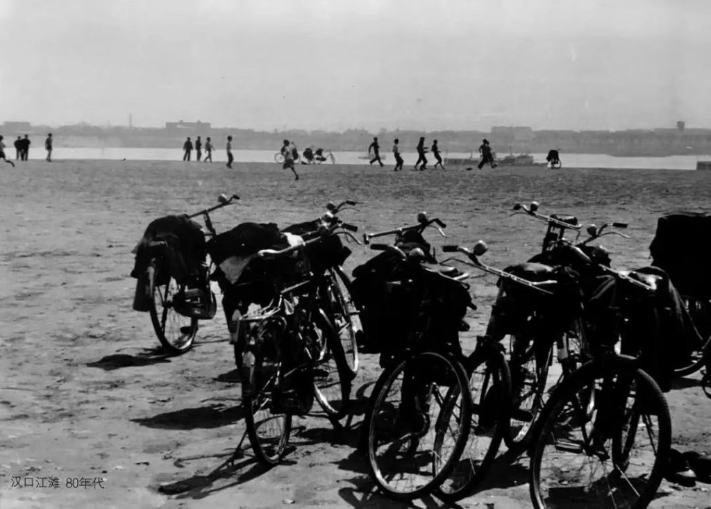 年轻人下班后骑自行车聚集到江滩,一场激烈的球赛就此开场。那时的江滩还没有任何建筑,只有望不到边际的草坪,活脱脱一个纯天然的足球场。