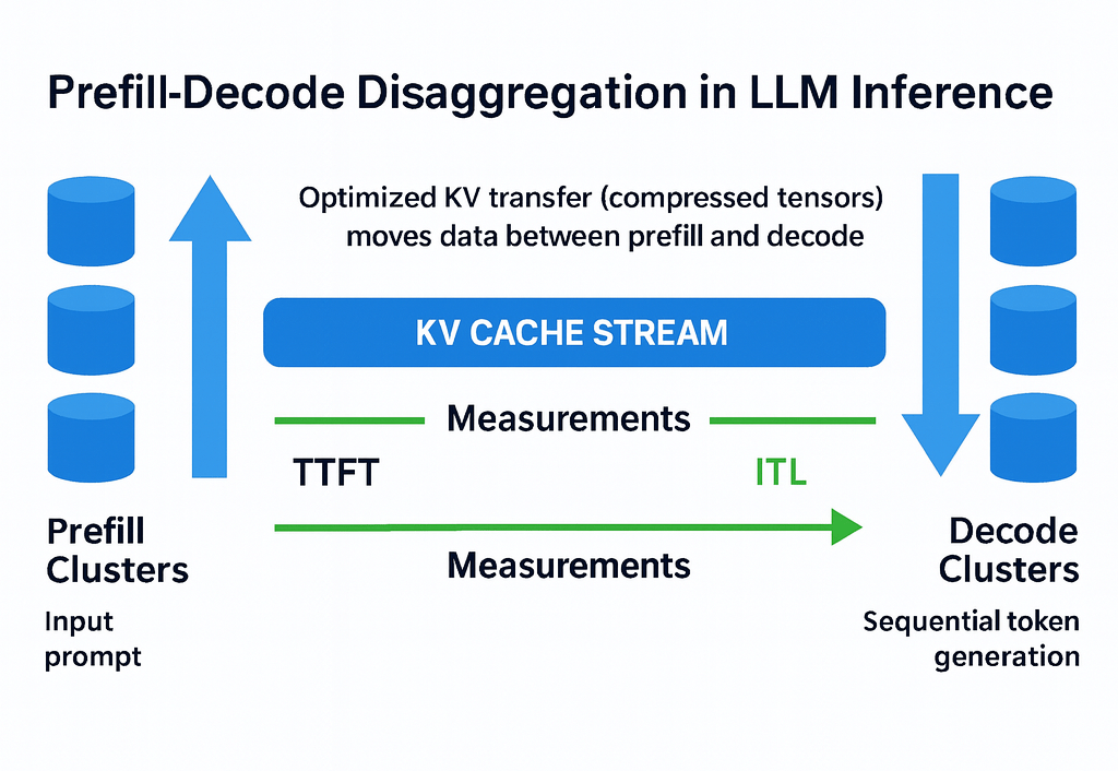 - KV Cache Stream: Optimized KV transfer (compressed tensors) moves data between prefill and decode.